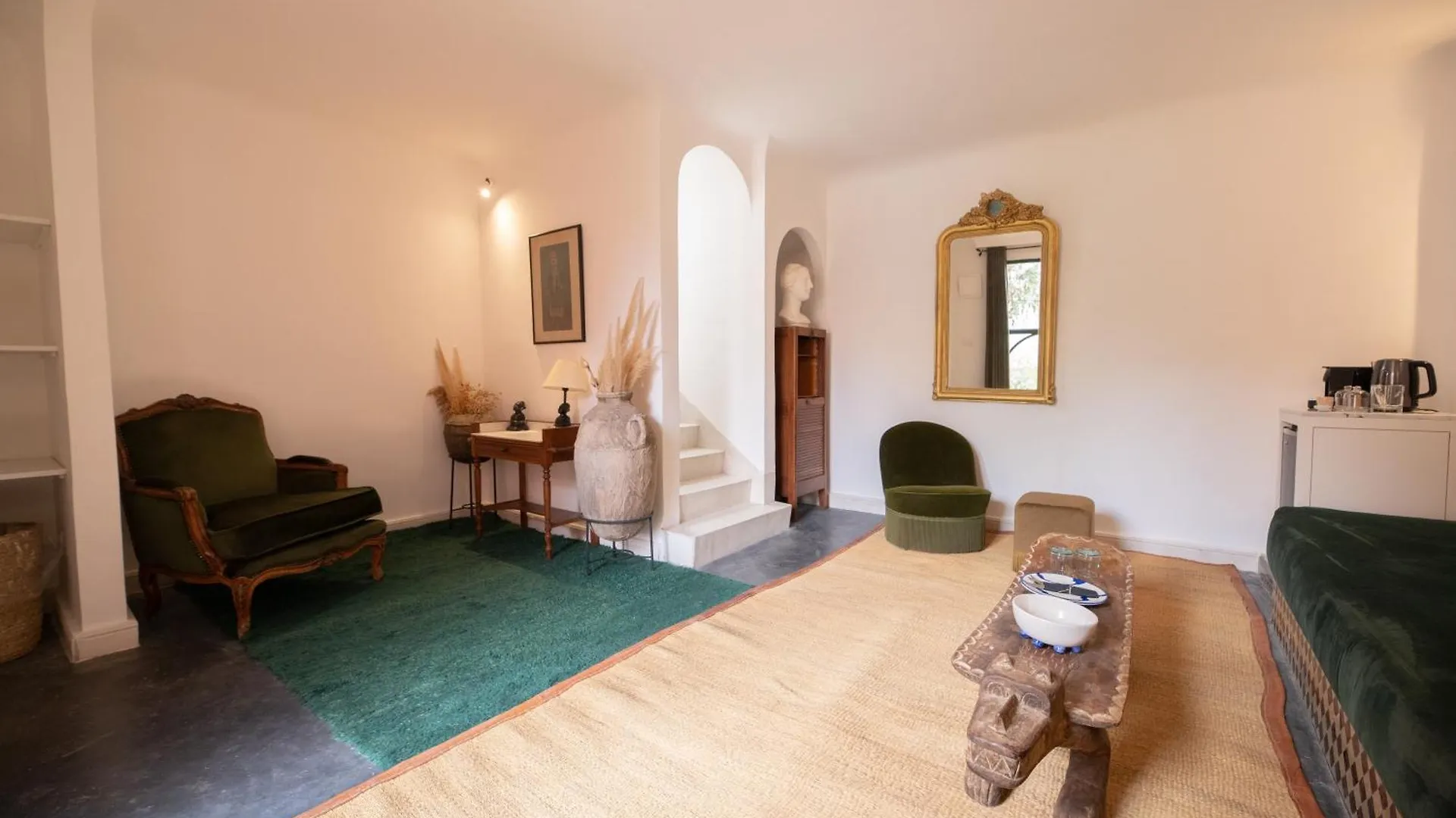 Laissez-vous envoûter par l'atmosphère distinguée qui règne dans ces havres de paix, où chaque détail est soigneusement pensé pour créer une ambiance intime et sans égal. Les murs ornés d'azulejos traditionnels, les patios luxuriants remplis de verdure et les terrasses offrant une vue imprenable sur les montagnes de l'Atlas vous transporteront dans un monde où le luxe est synonyme d'harmonie et de sérénité.